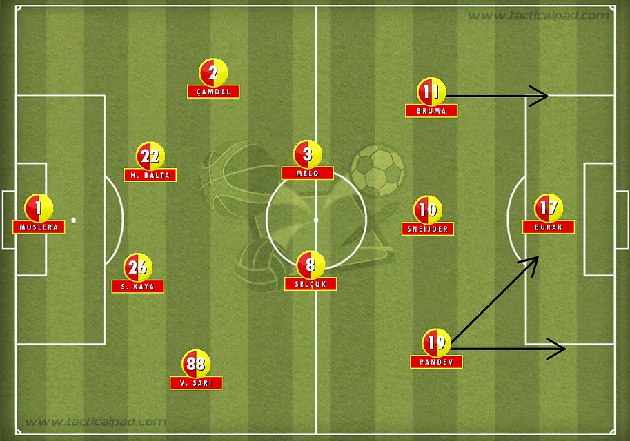Sneijder, Galatasaray için kritik önem taşımakta. Sneijder’in daha fazla topla buluşması ve Pandev’in de katkısıyla topun daha fazla hucüm bölgesinde kalması Galatasaray’ın şampiyonluk şansını direk etkileyecek faktörler.